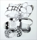 ‘Hybrids’ is a series of visual experiments that explore the rich territory between disciplines. Each piece is constructed from cut paper but are also painted and dipped – they are flat but like rilievo, cast shadows. Their identity shifts depending on how the pieces are hung and the environment in which they are exhibited. All the pieces are black and white, mixed media and within the dimensions 35cms x 48cms.
